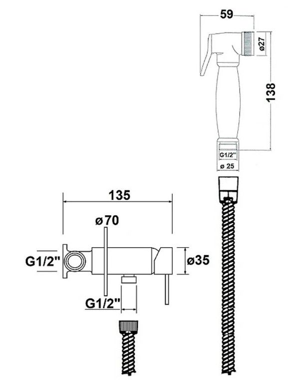 Готовый комплект гигиенического душа;скрытый монтаж;латунная лейка;хром.