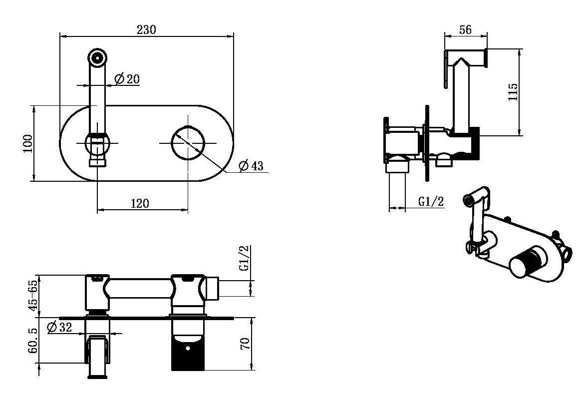 Гигиенический душ со смесителем Boheme Stick 127-BG.Характеристики:Цвет: черный матовый, золото.