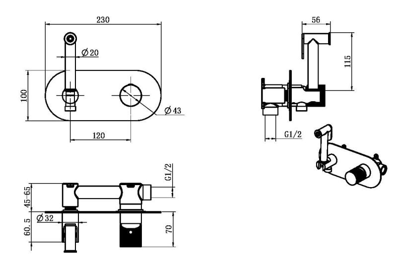 Гигиенический душ со шлангом.