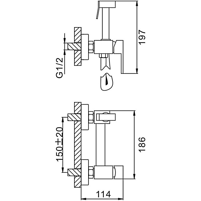В комплекте:Душевой шланг 120 см, С гигиеническим душем, Держатель лейки