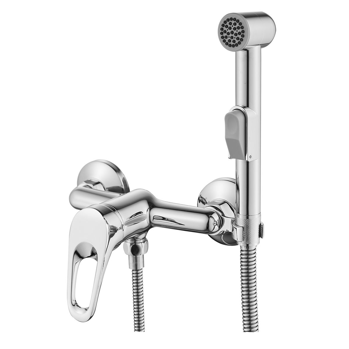 Аксессуары в комплекте (шланг 1,2 м, лейка гигиенического душа с нажимным механизмом с функцией легкой очистки)