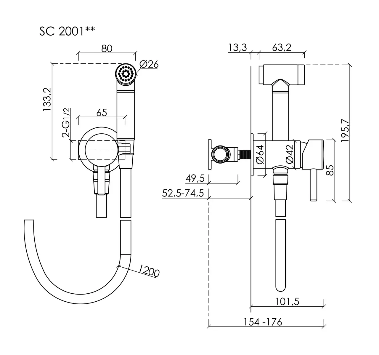 Гигиенический душ SANCOS Atom со смесителем, с внутренней частью, цвет черный матовый, встраиваемый, настенныйПолный комплект со смесителем