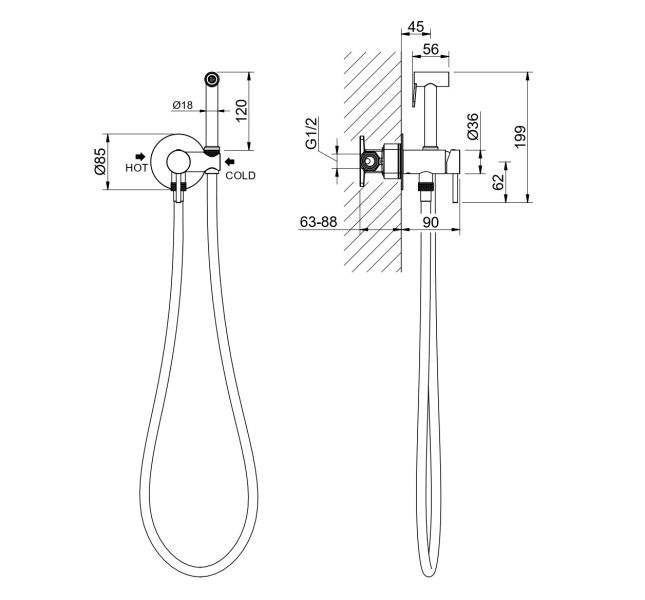 • в комплекте гигиенический душ, держатель для душа и шланг