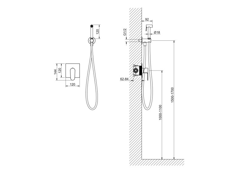 • Душевой гарнитур: гигиеническая лейка, шланг, шланговое подсоединение с держателем)