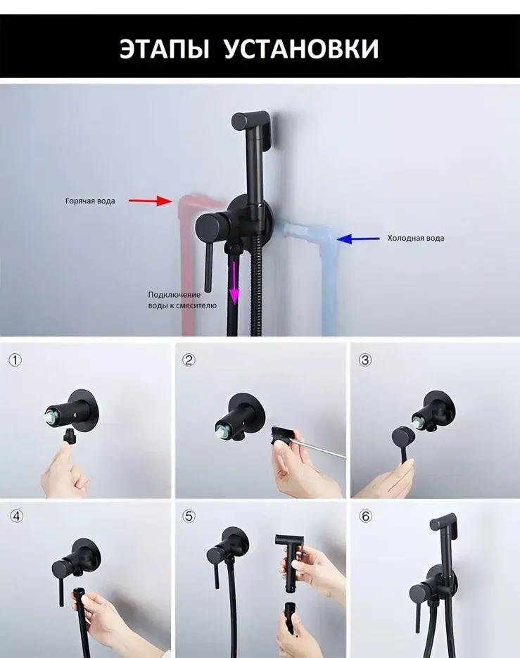 Душ BRAIES B CK-P07B гигиенический со смесителем из латуни BOCH MANN, с шлангом 120 см, цвет ЧЕРНЫЙИдеально подходящий для современной ванной комнаты, этот роскошный набор для душа - идеальный выбор. Включает в себя высококачественный душевой клапан с термостатическим управлением и полный набор триггеров со шлангом, головным и настенным кронштейном. Особенности продукта: