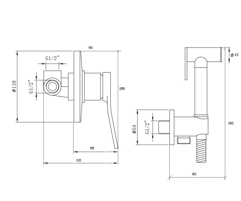 Гигиенический душ со смесителем Bronze de Luxe Element EL28GB, матовое золото/черный