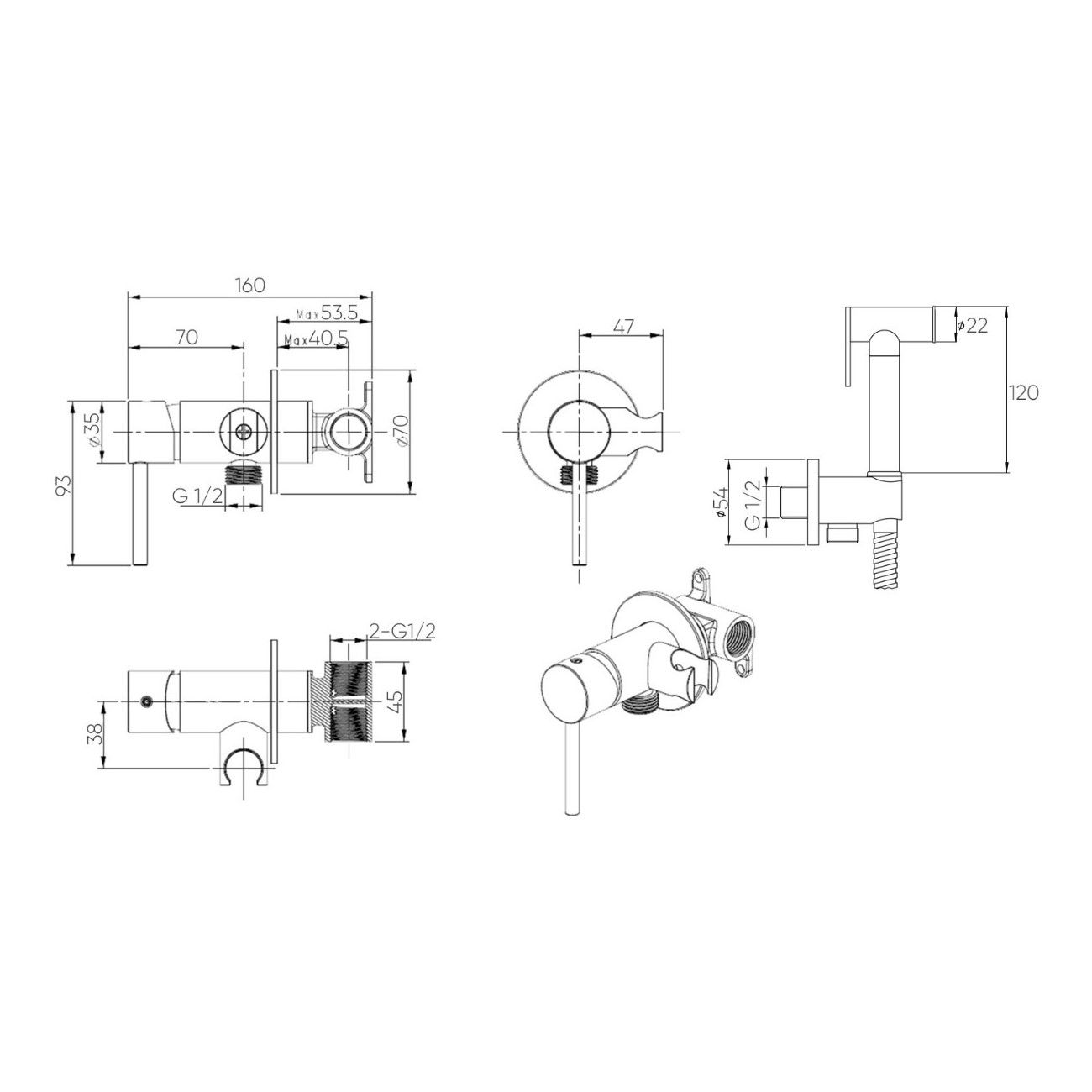Гигиенический душ со смесителем Bronze de Luxe LIBERTY 701GG, графит