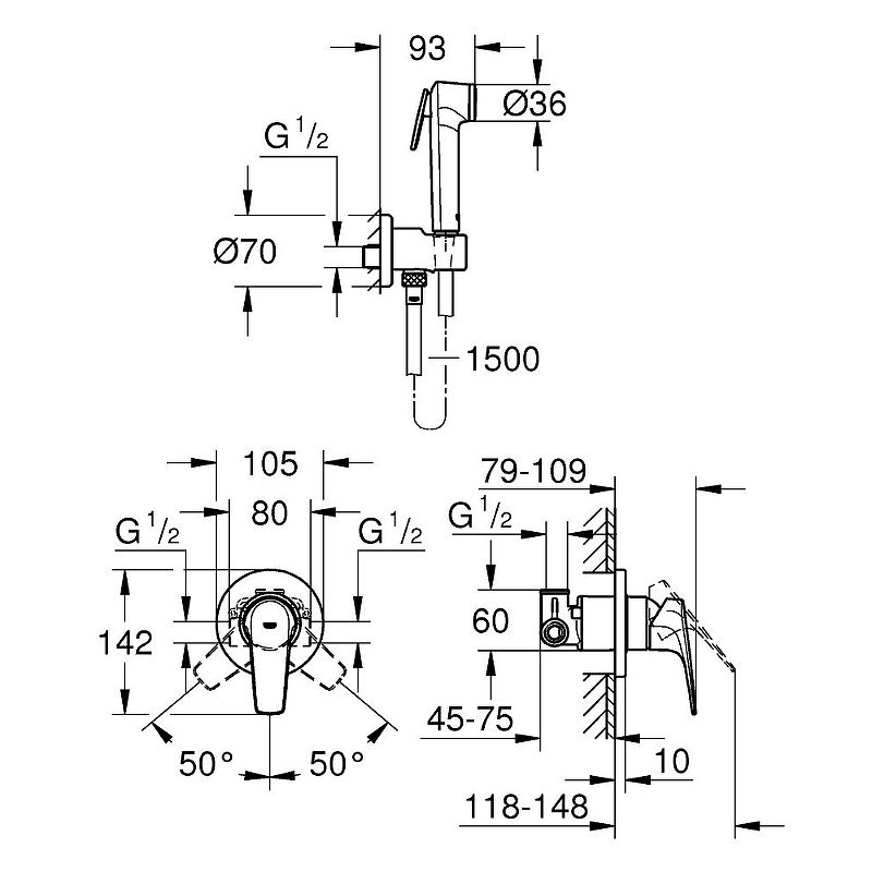Гигиенический душ Grohe BauFlow, 29328000, со смесителем, хромВключает в себя:Смеситель для душа... Подробнее