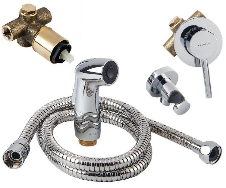 - гигиенический набор - комплект: встраиваемый смеситель для душа внутренняя часть и внешний элемент гигиенический душ с кнопкой включения воды