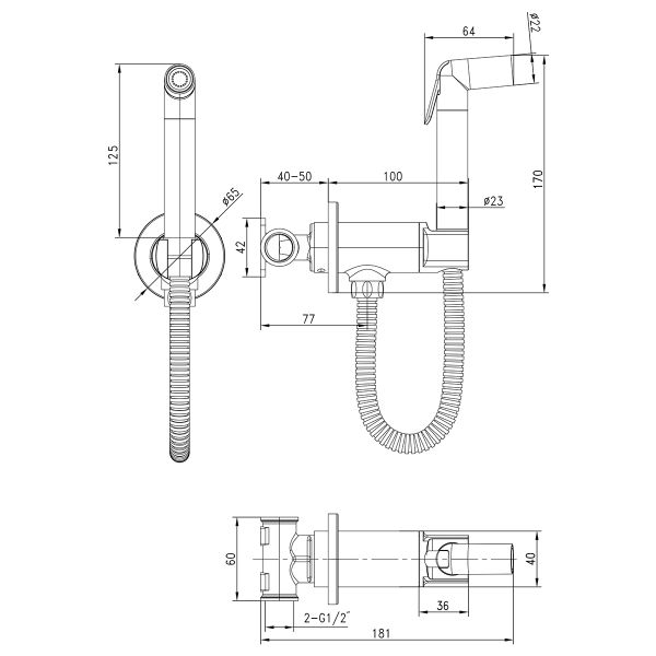 - Аксессуары в комплекте: лейка гигиенического душа с нажимным механизмом, душевой шланг 1,2 м (Turn-Free)