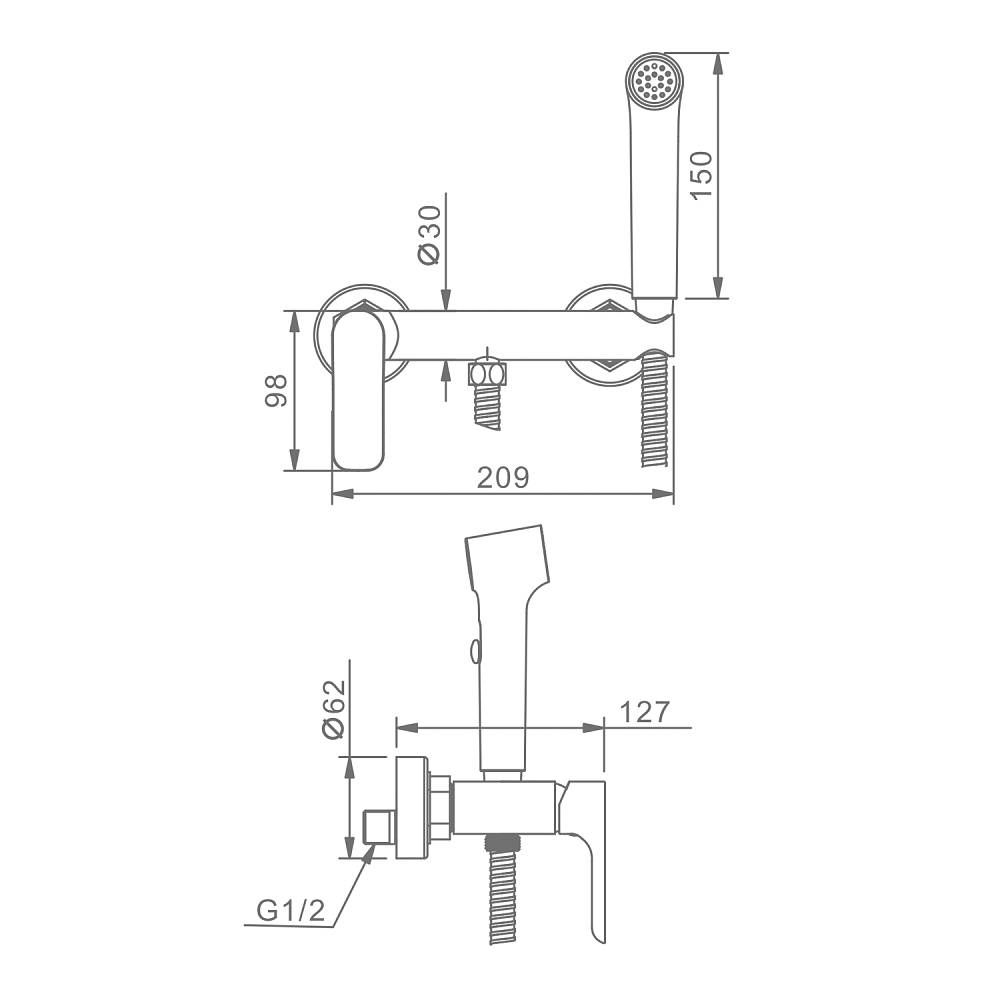 Гигиенический душ со смесителем Raglo R03.51.03, сатин золотой
