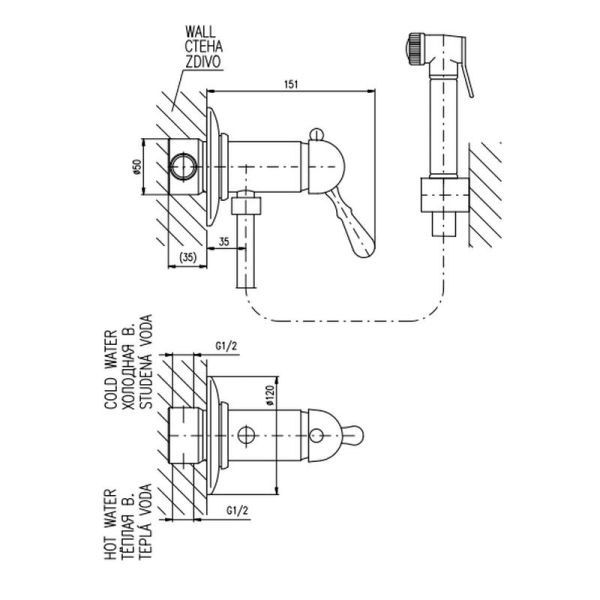 Гигиенический душ со смесителем Rav Slezak Labe L547 хром купить