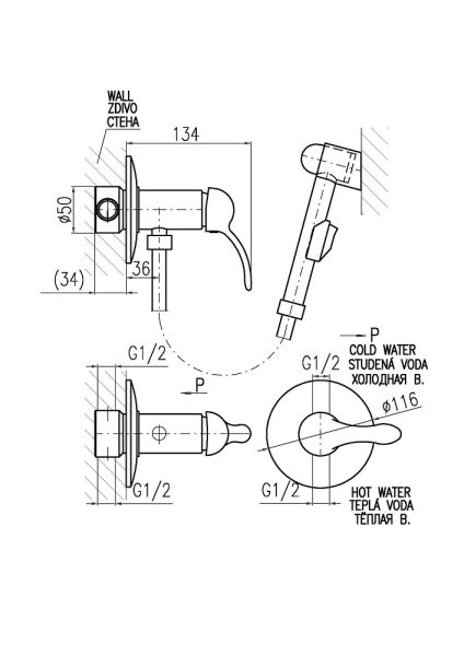 Гигиенический душ со смесителем Rav Slezak Labe L547/1Z золото купить