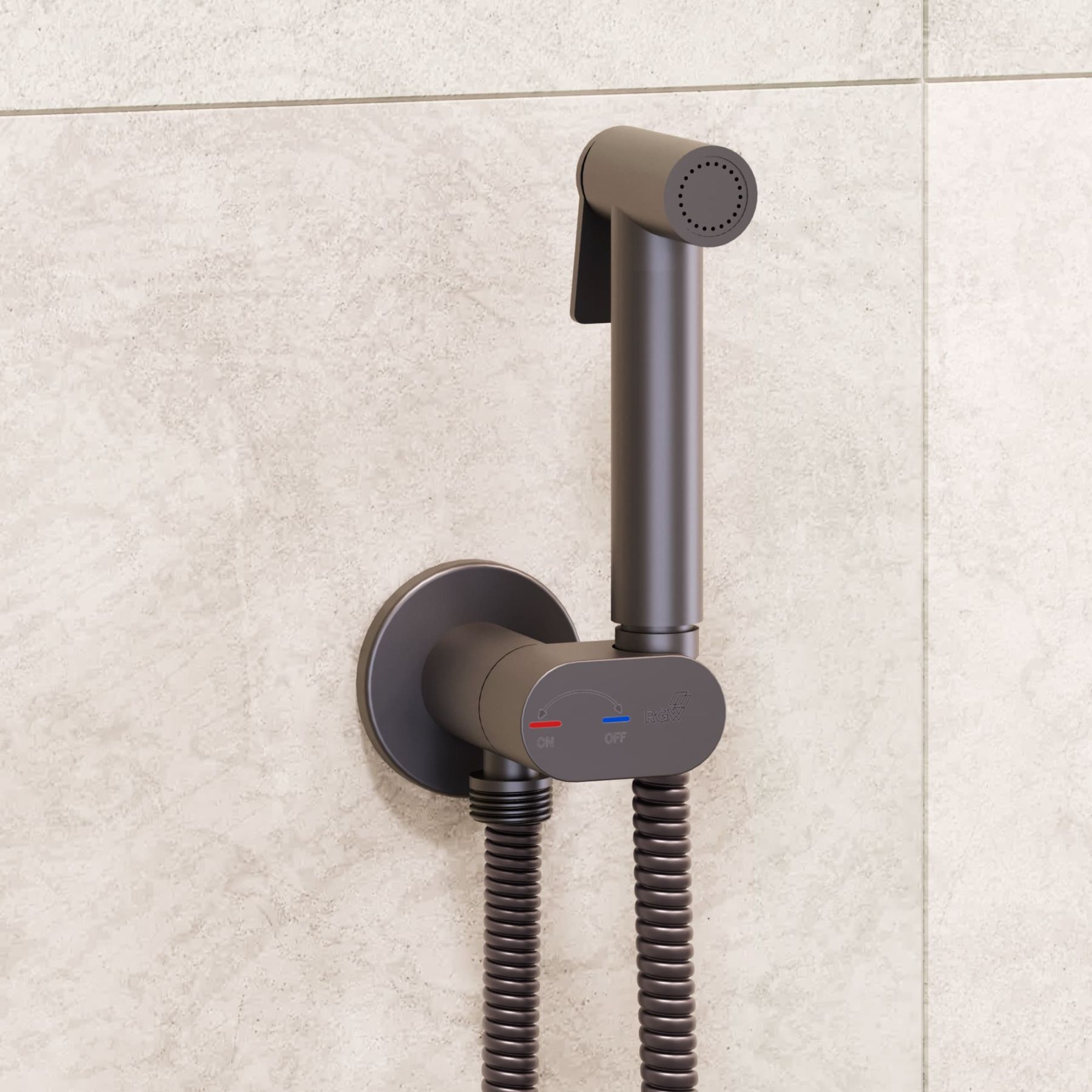 Самый миниатюрный комплект Гигиенического душа серого цвета со смесителем и краном держателем лейки, скрытого монтажа RGW SP-213Gr, с прогрессивным поворотным картриджем, оснащён функцией «Умная блокировка». Гигиенический душ со смесителем круглой формы, инсталляционный, встройка в стену RGW SP-213Gr — это сантехническое оборудование, придуманное для соблюдения личной гигиены. Обычно его устанавливают возле унитаза, тем самым в небольших пространствах ванных комнат он заменяет биде. Первое, что приходит на ум, когда слышите «Гигиенический душ для унитаза (гигдуш — в бытовом разговоре)» — это моментальная гигиена интимной зоны сразу после туалета без использования туалетной бумаги.Однако в современном быту гигиенический душ для туалета и биде приобретает и другие сценарии использования, например: