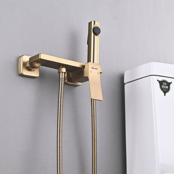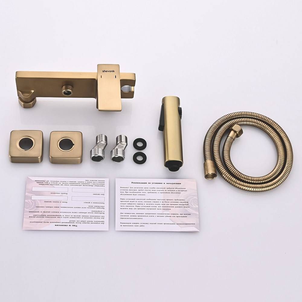 Гигиенический душ со смесителем Shevanik S6105G-1 в цвете "золотой сатин" изготовлен из высококачественной латуни, обеспечивая прочность и долговечность. Уникальная конструкция корпуса смесителя выполнена в виде полочки для дополнительного удобства и хранения личных гигиенических принадлежностей.