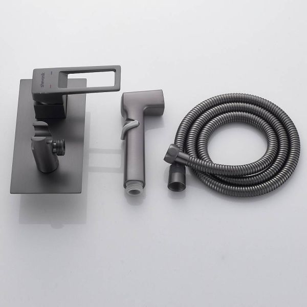 Гигиенический душ со смесителем Shevanik S6805T в современном цвете "оружейная сталь" предназначен для скрытого монтажа, что позволяет сохранить эстетичный вид ванной комнаты. Изготовлен из прочной латуни, что гарантирует долговечность и устойчивость к коррозии. Управление осуществляется с помощью керамического картриджа и рычажного механизма, обеспечивая плавную и точную регулировку воды. Лейка гигиенического душа выполнена из ABS пластика, а её держатель удобно размещен на корпусе смесителя, что способствует комфортному использованию. В комплект входит шланг в двойной металлической оплетке длиной 120 см, который обеспечивает надежность и защиту от повреждений. Гарантия на данный продукт составляет 5 лет, что подтверждает его высокое качество и надежность.