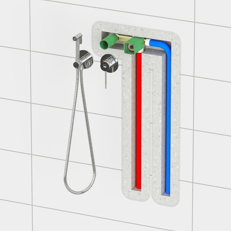 Встраиваемый смеситель с гигиеническим душем Timo Saona 2339 предназначен для монтажа в твердой или полой стене. Термо картридж с защитой от ожогов ограничивает максимальную температуру воды 45 С° повышая комфортность и безопасность использования. Основной задачей данной модели является: экономия места (установка чаши для биде занимает достаточно много места и к тому же затратнее). Все коммуникации, крепления и механизмы спрятаны в стену и закрыты декоративными накладками, снаружи находится только рычаг управления смесителем и держатель гигиенической лейки с подключением шланга, такая модель отлично сочетается с инсталляцией для унитаза. Длины шланга 1,2 метра хватает для решения гигиенических задач. Можно также использовать например, для мытья собаки после прогулки или наполнения ведра воды и т.д. Сложностей монтажа не возникает при установке смесителя опытным сантехником. Внимательно изучите инструкцию по монтажу и эксплуатации.
