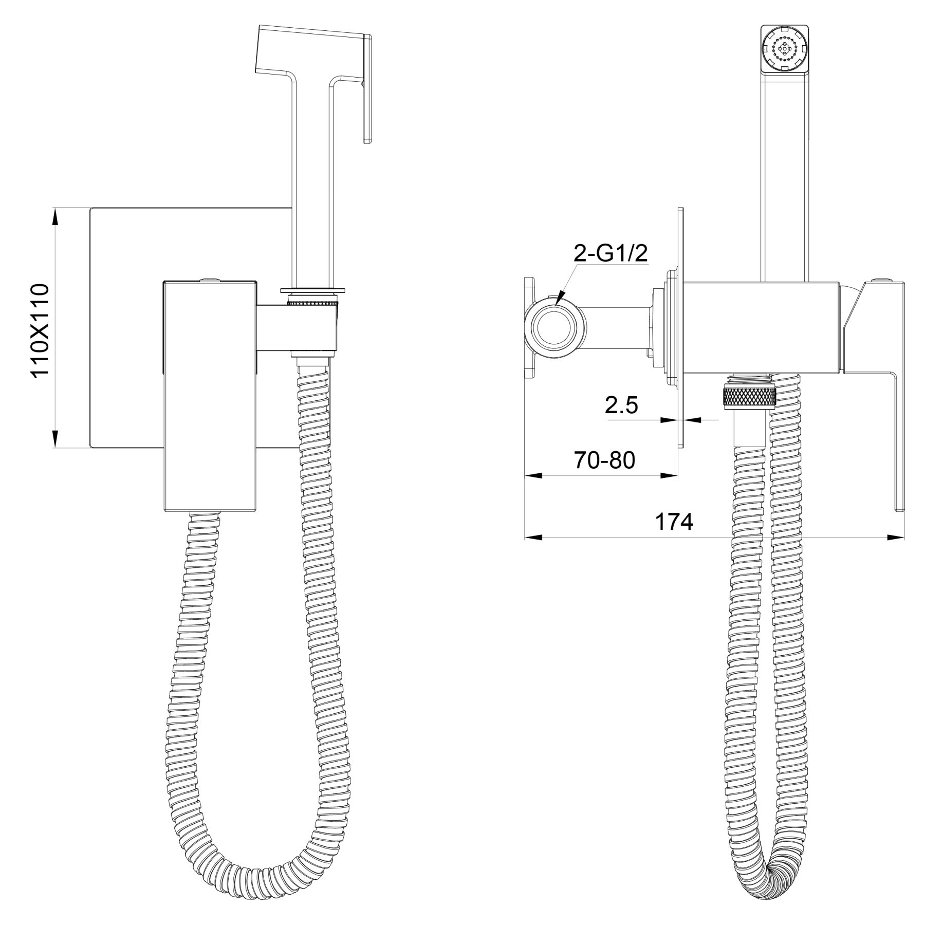 Гигиенический душ со смесителем Wonzon & Woghand Cube WW-88829016-BG брашированное золото