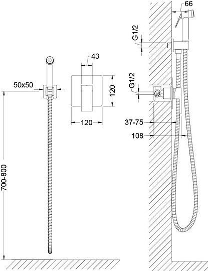 • Смеситель скрытого монтажа, с гигиеническим душем