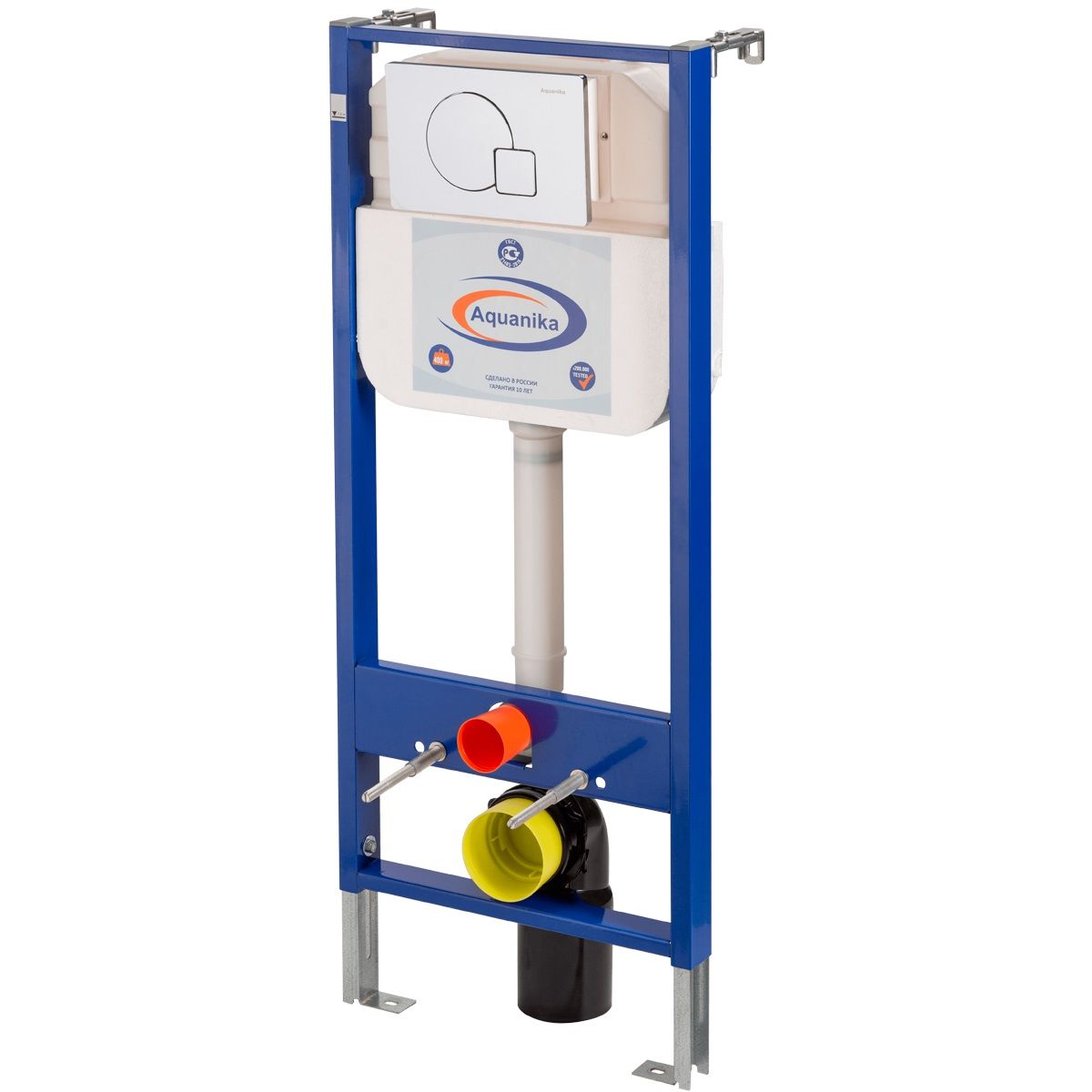Комплектация «готовый комплект»- все необходимые крепления, патрубки, звукоизолирующая прокладка в комплекте. Вертикальные ребра жесткости в конструкции рамы – дополнительная опора в месте давления керамики на стену. Благодаря им инсталляция становится универсальной и подходит для унитазов любых размеров, включая унитазы с небольшой контактной поверхностью. Нет необходимости докупать дополнительные аксессуары для монтажа таких унитазов. Конструкция из цельного стального профиля 50*25 мм толщиной 2,0 мм позволяет выдерживать требуемую стандартами нагрузку до 400 кг. Цельно-выдувной бесшовный бачок из полиэтилена низкого давления (ПНД) с защитой от конденсата. Комфортное использование благодаря заливному клапану с низким уровнем шума – менее 20 Дб. Металлические детали конструкции инсталляции Aquanika покрыты порошковой эмалью для предотвращения появления коррозии. В сочетании приведённых характеристик мы предоставляем гарантию на данный продукт 10лет.