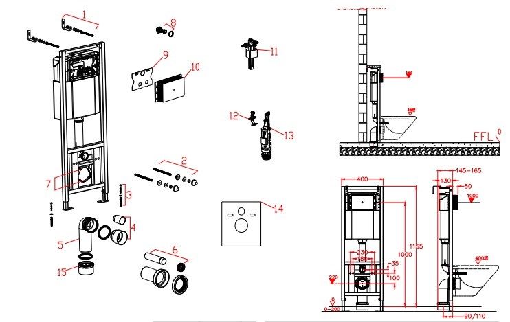 Инсталляция DQ - это система креплений и приспособлений, позволяющих произвести установку подвесного унитаза. Крепится она к стене или за специальным декоративным коробом. На раму устанавливается чаша подвесного унитаза, сливной бачок, различные приспособления и механизмы, вентили и краны, предохранительные клапаны. Также система инсталляции позволяет подключать трубы для подачи и отведения воды. Особенности системы инсталляции DQ: