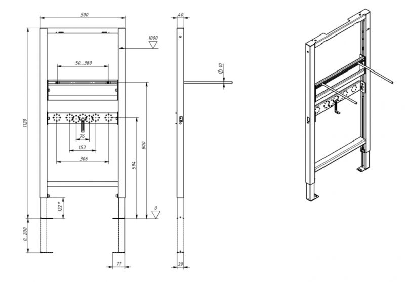 Монтажные перекладины легко регулируются, что позволяет установить раковину на нужной и комфортной высоте