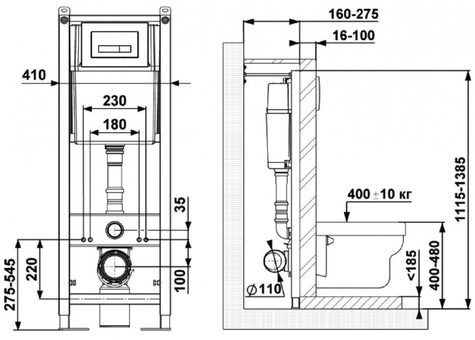 Инсталляция для унитаза Berges АТОМ Line 410 кнопка soft touch чёрный/хром глянец 040342 купить