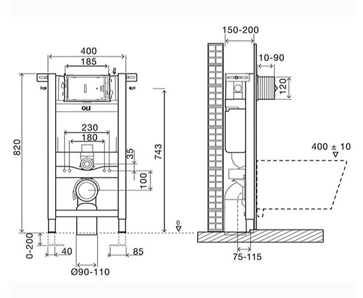 Инсталляция под механическую панель слива.