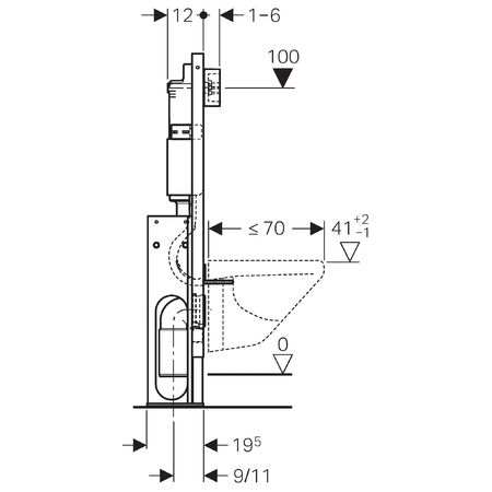 Монтажный элемент Geberit Duofix для подвесного унитаза, 112 см, со смывным бачком скрытого монтажа Delta 12 см, отдельно стоящий, укрепленный