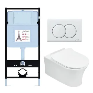 Инсталляция Jacob Delafon E21731RU-00, с безободковым унитазом Aleo, сиденье с микролифтом, клавиша белая глянцевая