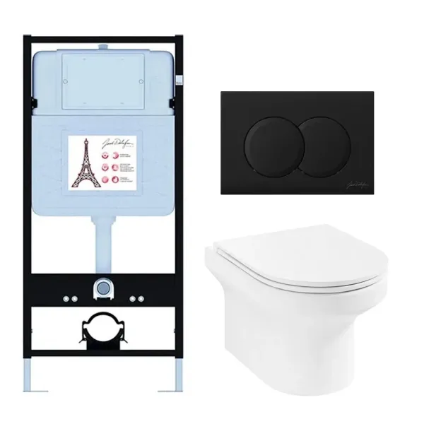 Инсталляция Jacob Delafon E21743RU-BL, с безободковым унитазом Elite, сиденье с микролифтом, клавиша черная матовая