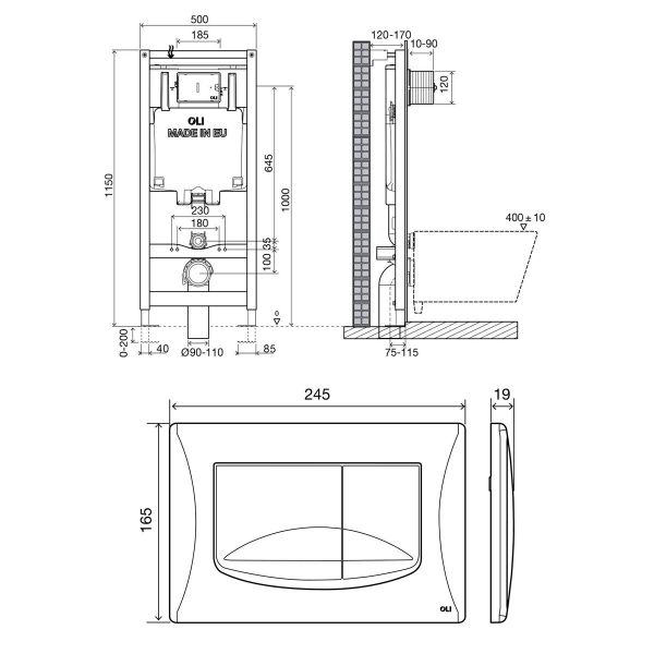 Инсталляция OLI 80 (0500/1150/0120), мех. + Панель слива RIVER, хром глянец, OLI купить