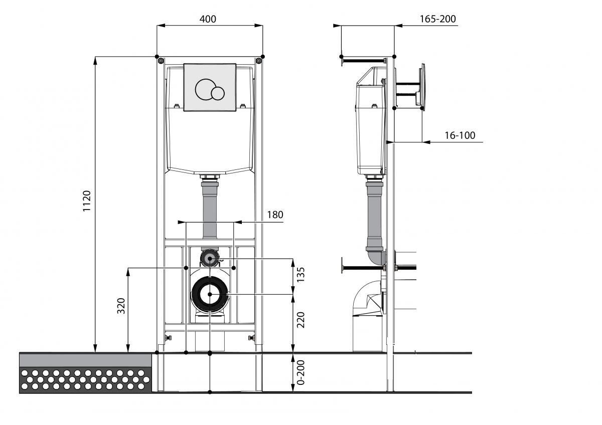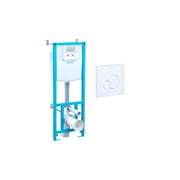Инсталляция Santek с клавишей смыва белого цвета с креплением к стене и в пол.