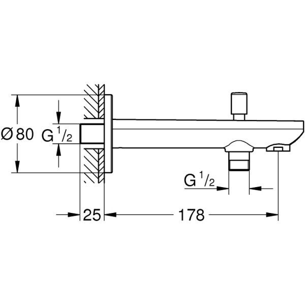 Излив для ванны Grohe BauContemporary 13390000 хромНастенный монтаж.