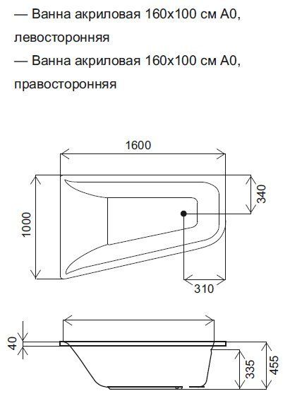 W72A-160-100W-R2 каркас для ванны spirit 160х100