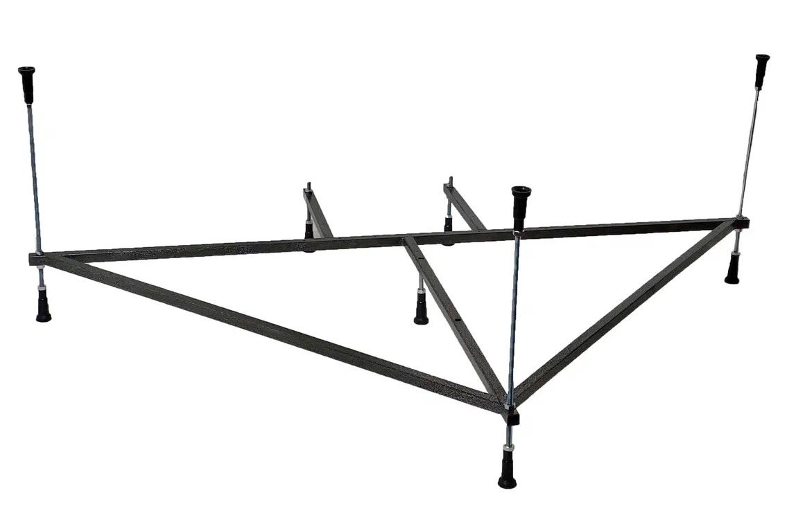 Усиленный цельносварной стальной каркас для ванны изготовлен из квадратного металлического профиля 2х2 см и окрашен темно-бронзовой молотковой краской. Каркас имеет 8 ножек и 4 опоры в борт ванны снизу. Предназначен для использования во влажных помещениях.