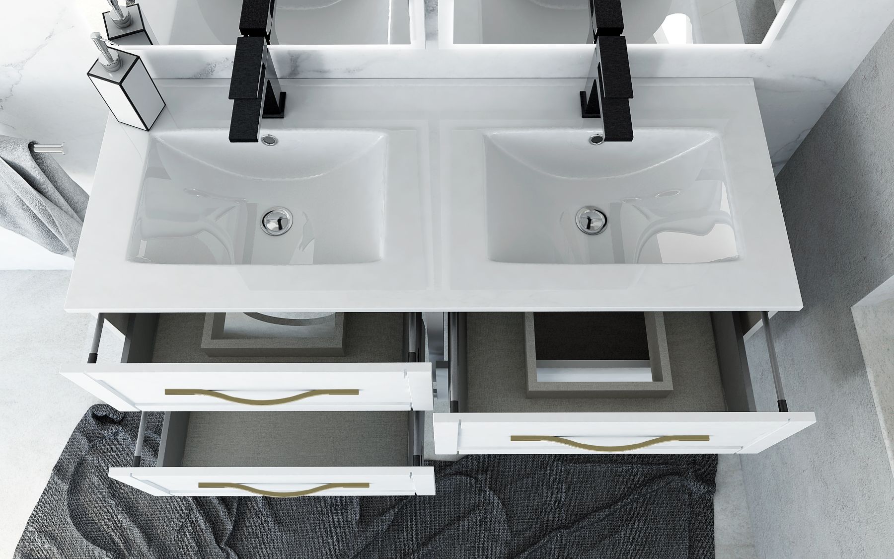 Керамическая раковина с двумя чашами121x46x19смБелая