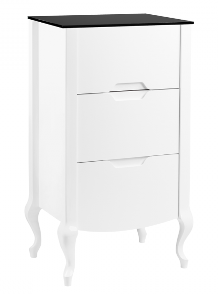 • Премиальная отделка: комбинация глянцевой белой эмали, массива бука и черной стеклянной столешницы