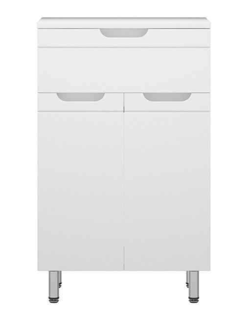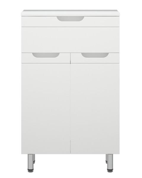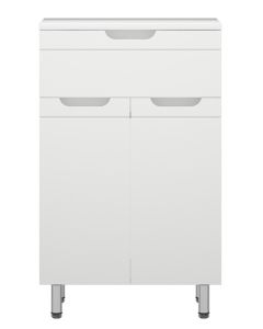 Комод Corozo Лея, 50 см, белый, SD-00001510Коллекция мебели для ванных комнат "ЛЕЯ" создана для тех, кто ценит простоту форм, сочетание округлых и прямых линий, удобство эксплуатации. У мебели коллекции «ЛЕЯ» корпус выполнен из ЛДСП, фасады - из влагостойкой плиты МДФ, покрытие – пленка ПВХ. Мебель оснащена доводчиками. Комод представлен в напольном варианте исполнения на четырех металлических опорах. У модели один выдвижной ящик высотой 110 мм и две распашные створки снизу. За створками одна регулируемая по высоте вкладная полка. Фурнитура с лицевой стороны фасадов отсутствует, вместо нее предусмотрены интегрированные ручки с декоративной полосой тонкой фрезеровки. Бесшумность и долговечность эксплуатации обеспечивают надёжные системы мягкого закрывания – роликовые направляющие и петли с доводчиками.