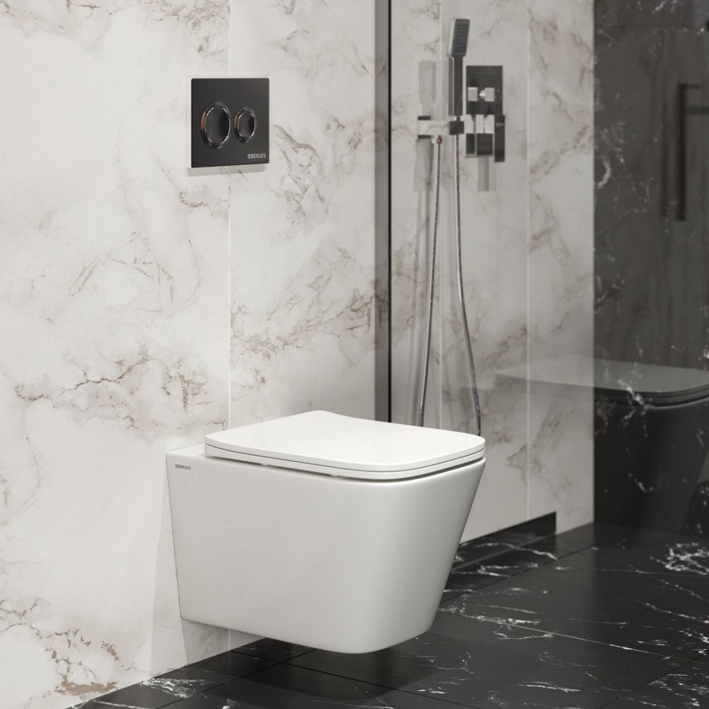 Комплект Berges 043275: инсталляция NOVUM 525 D5 Soft Touch чёрная унитаз Floe Rimless сидение дюропласт Floe Slim SO купить