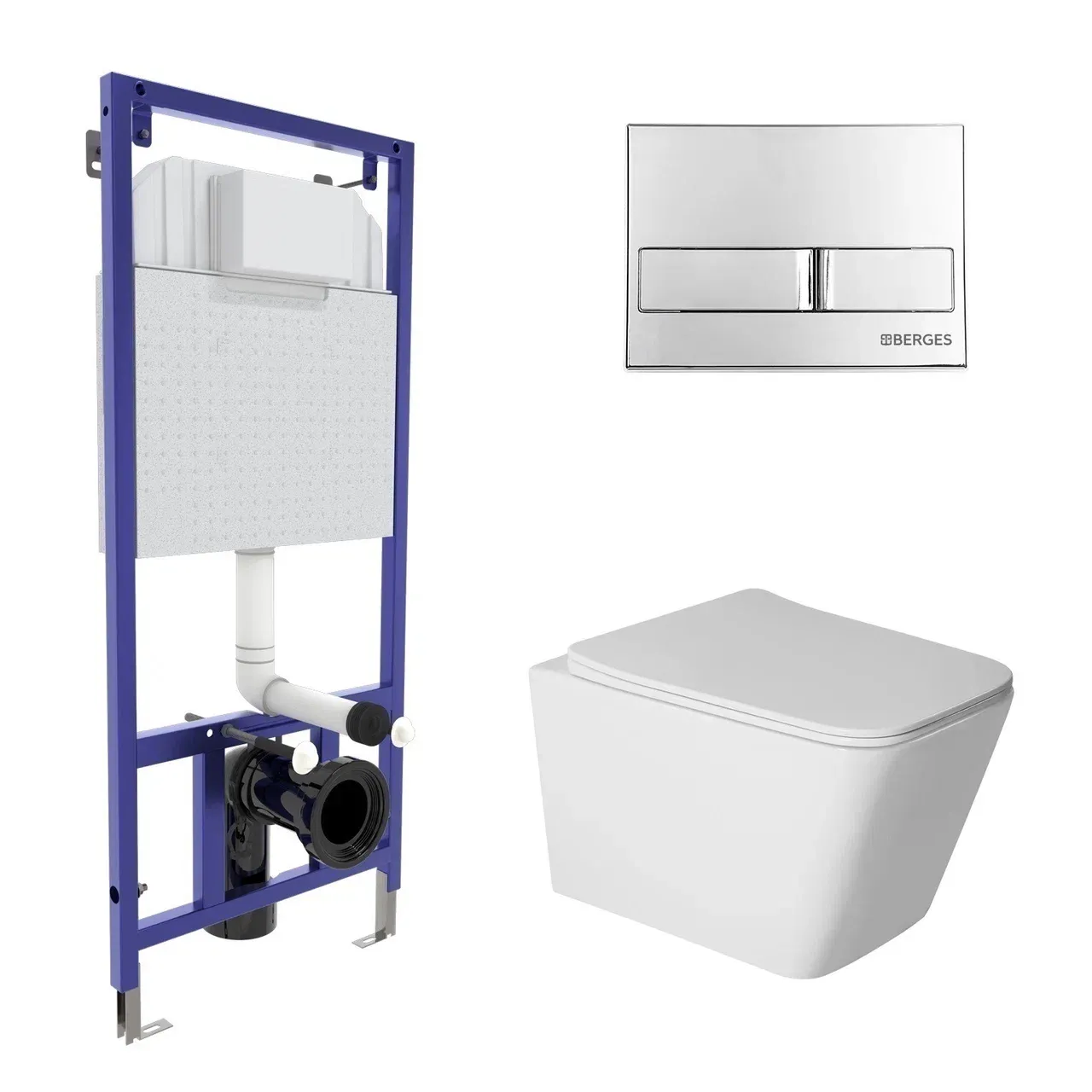 Комплект Berges 043399: инсталляция NOVUM кнопка L3 хром глянцевый унитаз Sigma Rimless сидение дюропласт быстросъём купить