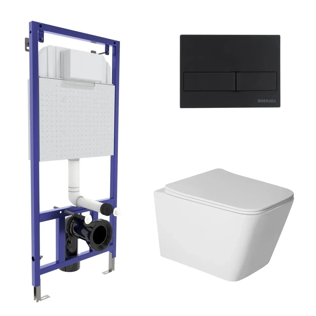 Комплект Berges 043400: инсталляция NOVUM кнопка L5 Soft Touch черная унитаз Sigma Rimless сидение дюропласт быстросъём