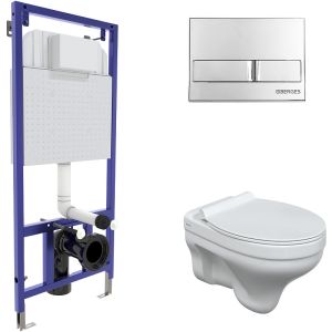 Комплект унитаза с инсталляцией Berges Wasserhaus Novum 042438 с сиденьем Микролифт и клавишей смыва Хром глянцевый.Характеристики:Унитаз Albit S Rimless:Цвет: белый.