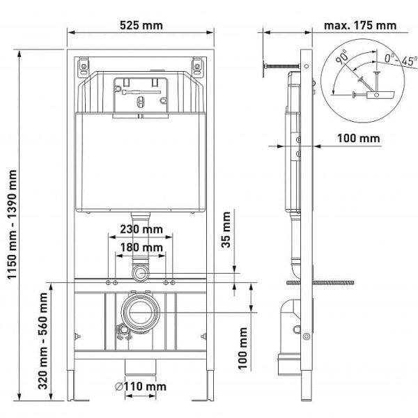 Инсталляция со смывным бачком Novum и клавишей смыва L3.
