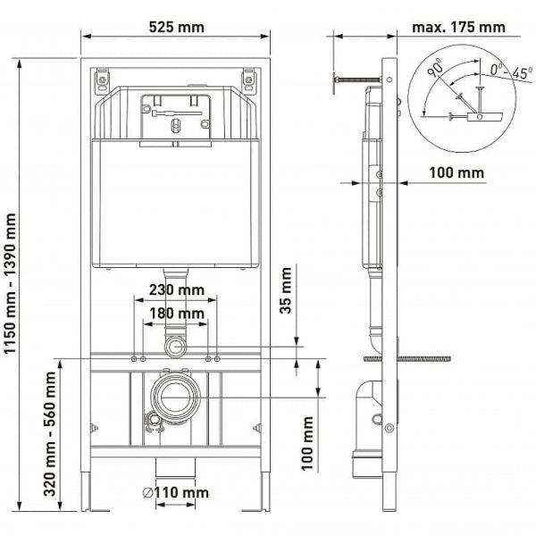 Инсталляция со смывным бачком Novum и клавишей смыва L1.