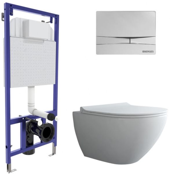 Комплект Berges 4в1 043269: инсталляция NOVUM525 кнопка F3 хром глянец унитаз Puma Rimless сиденье Toma Slim SO