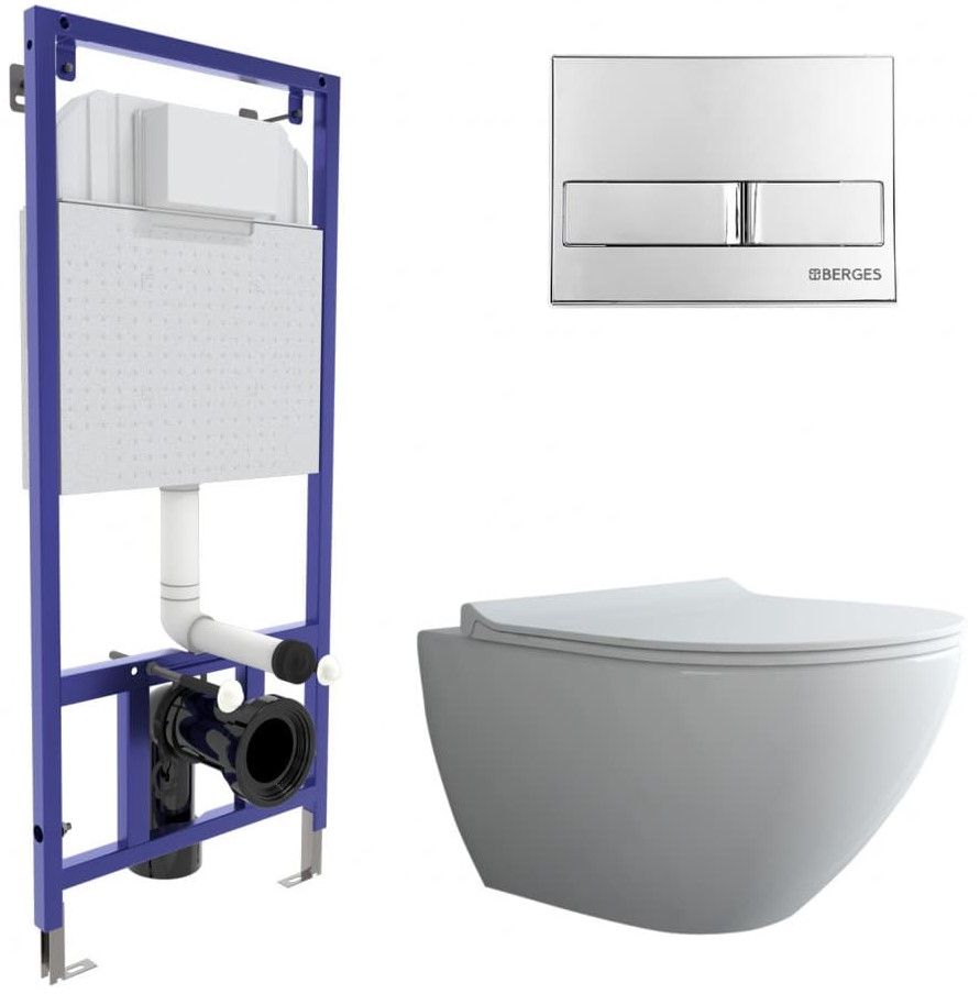 Комплект Berges 4в1 043272: инсталляция NOVUM525 кнопка L3 хром глянец унитаз Puma Rimless сиденье Toma Slim SO