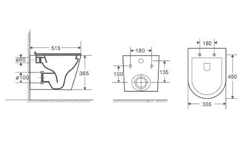 Комплект Унитаз подвесной безободковый DQ Venice DT1026025, 515*355*365мм, сиденье микролифт, черныйИнсталляция рамная скрытого монтажа DQ DI8055119, 550*100*1190мм, для подвесного унитаза, универсальнаяКлавиша смыва DQ Quadro DB1519025, черный