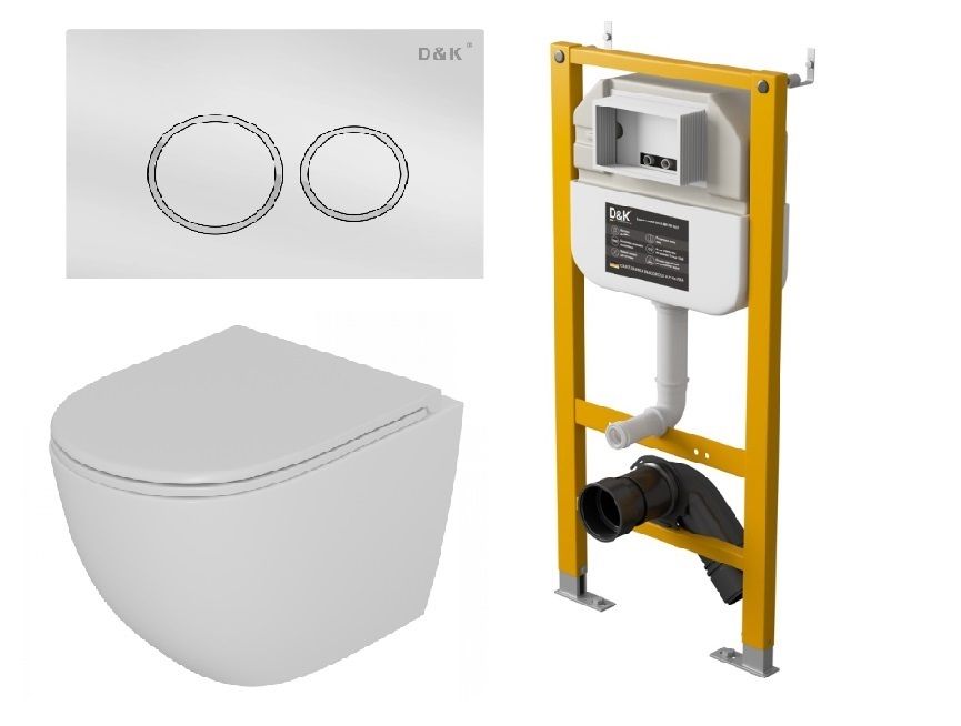 Комплект Унитаз подвесной безободковый  Matrix DT1396016+Инсталляция рамная скрытого монтажа  DI8050127, 500*117*1270мм, для подвесного унитаза+Клавиша смыва  Bayern DB1529016, белый