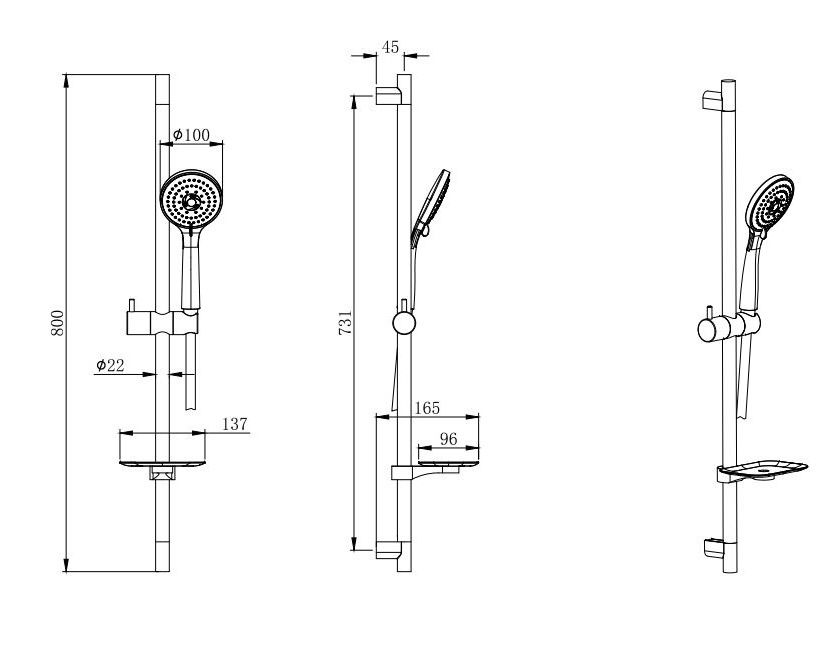 В комплекте: душевая штанга; держатель душевой лейки; душевая лейка ; душевой шланг из ПВХ ; мыльница; монтажный комплект